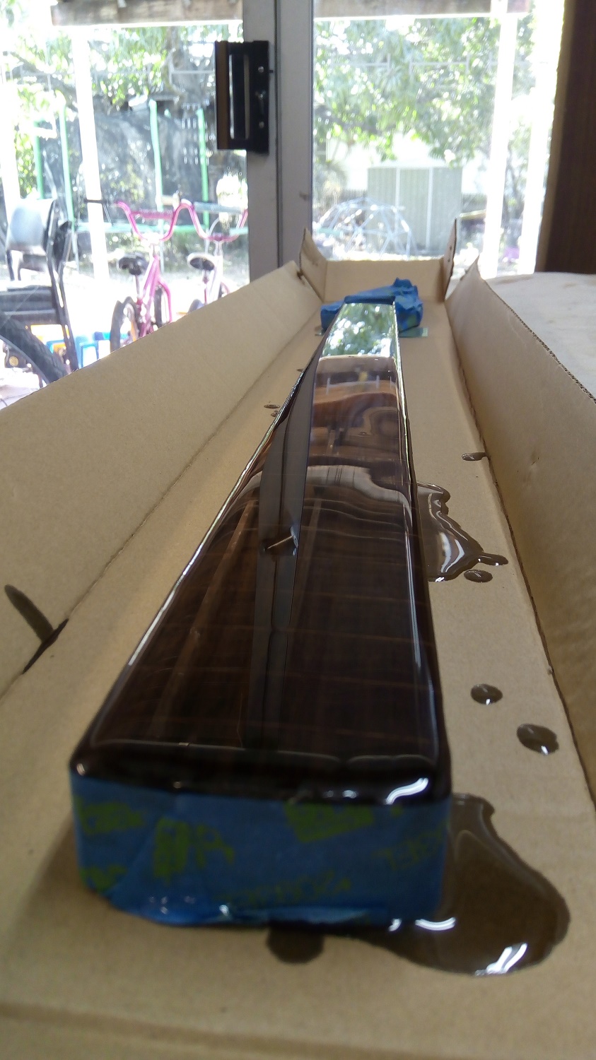 I'm going to leave the stain to dry for 4 or 5 days. I have gloss poly to finish the body later.