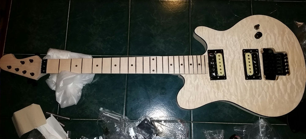 Mock build No. 1, the MM1-Q: I ordered this one because I've been a full-fledged member of the cult of Music Man since the first time I held an Axis. I currently own two Axis models, and it was a natural for my first build.