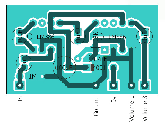 I'm a bit of a noob, and of course this circuit isn't very well supported (no real instructions, slightly confusing circuit diagram, no schematic, no PCB to purchase). I put the diagram and PCB layout in photoshop so I could see where the connections actually were, and came up with this: