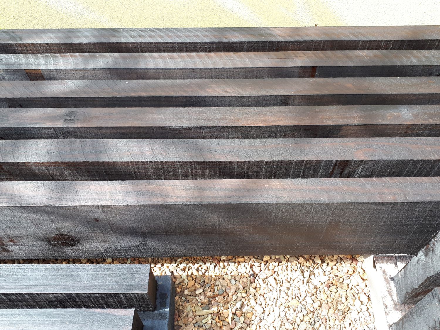 Below shots show what has kept me occupied and away from guitar building for more than a month.....it started out with repairing a section of the back fence which also resulted in replacing the treated pine sleeper retaining wall it was sitting on.....whilst painting the sleepers with a new age Creosote that is more environmentally friendly, plus BGSFOS no longer stocks the dangerous stuff, couldn't help thinking this would be a great product to use if you wanted blacker than black? Perfect on a weathered, distressed, industrial looking job....Attachment 23126Attachment 23127Attachment 23128Attachment 23129