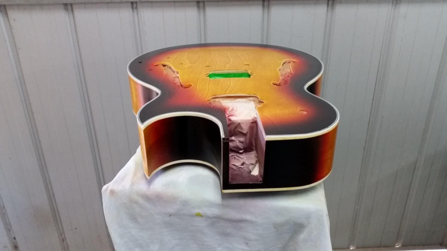 You could go to your local cheap shop and get a couple of jumbo car washing sponges and push them in through the neck pup opening. I then put some brown craft paper over the top, that way you can change the paper as necessary after sanding.