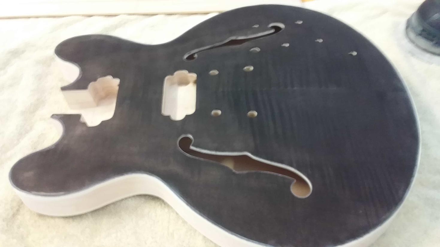 Hi Ozo, looking good. Looks like you have oversanded some of the dye so you will lose a bit of the lovely flame. Looks like you used an orbital sander. If you have the patience I would rub more black dye over to pop more of the flame, then carefully sand back with a sanding block, then apply your stain colour.