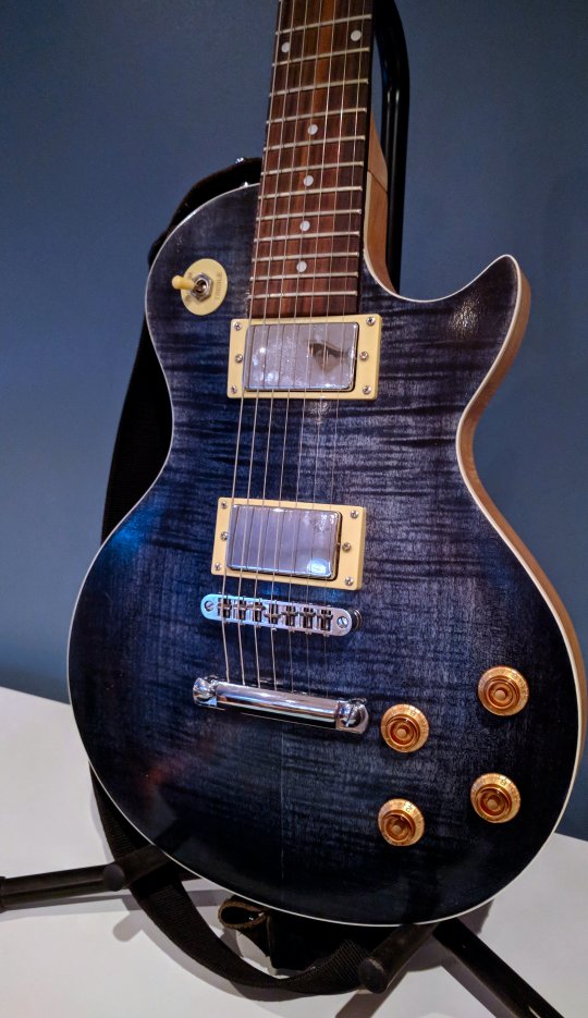 The LPA-7 is, as the name suggests, an LP-style guitar, with an ash body, and is of the 7-String variety. The guitar features typical LP-kit hardware (but 7-string versions), includes a flame maple veneer on top, with cream binding, and is finished off with a rock maple neck containing 22 frets. It's a great guitar.