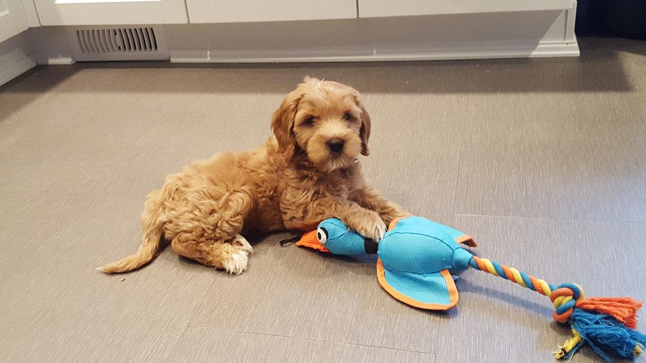 Thanks to a prompt from FrankenWashie I'll share a photo of my little buddy Walter the Australian Labradoodle. He's being covertly trained to be my water fowl hunting companion.