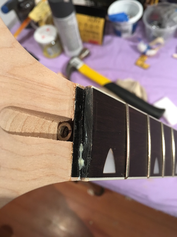 Get some maple veneer, cut it roughly to size, then glue and clamp it to the side of the neck pocket. Wait 24 hours, then trim the excess down to size. Then sand back in the areas where its tight until the neck fits snugly. I've had to do it to both sides of the neck pocket on my ESB-4 kit. If you can, I'd glue it on the other side of the neck pocket, so it's away from you and you are less likely to notice it (though that depends on your proposed finish and whether that is likely to cover up all signs of it).