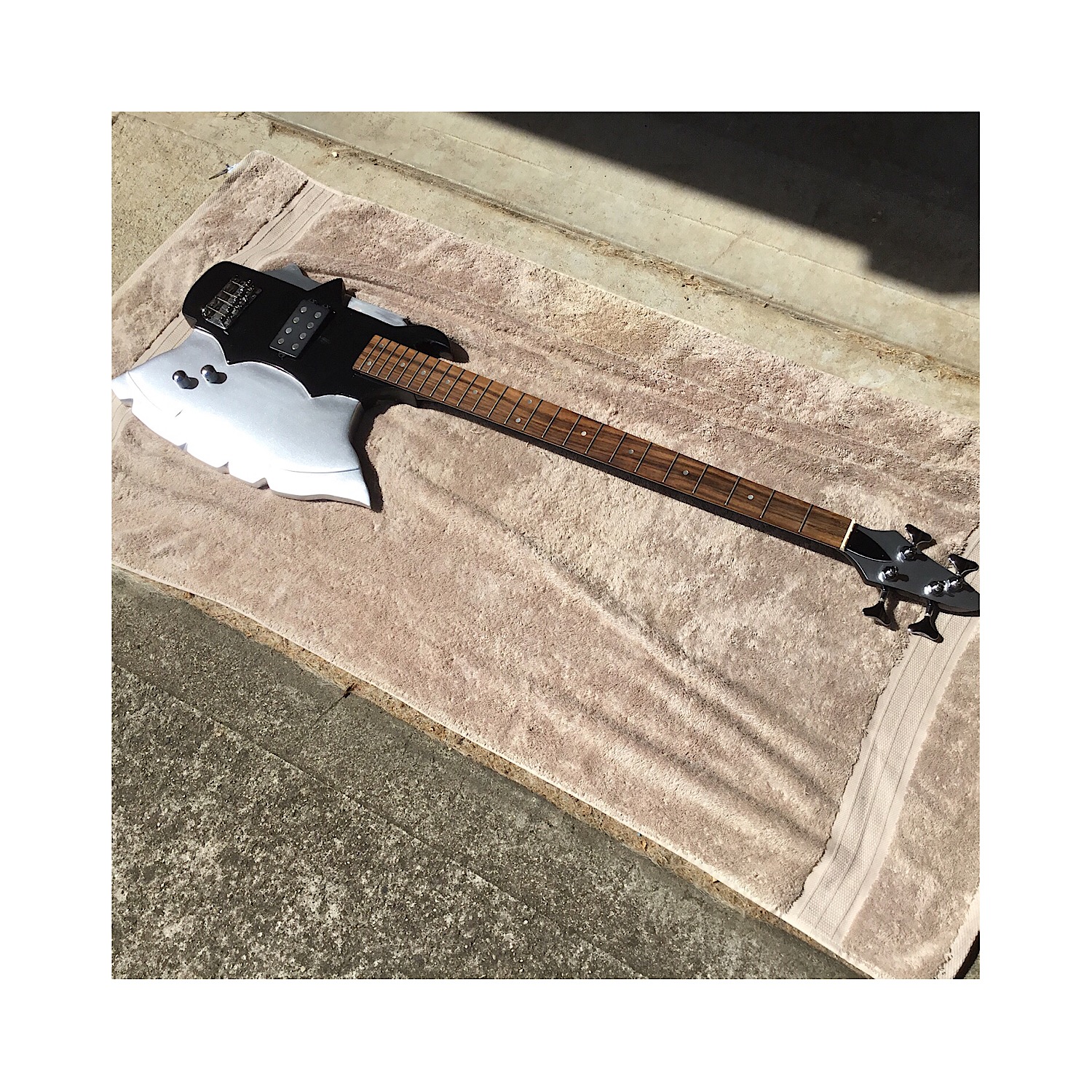Back in the mid seventies,when I was just a teenager,we went to see Kiss in concert at the Sydney Showgrounds, and I just wanted a Gean Simmons axe bass. Anyway, I had on old bass laying around and I was working in a timber yard at the time and I just got strait into building it as a mock up for a fancy dress at the local Rollerena skate rink.