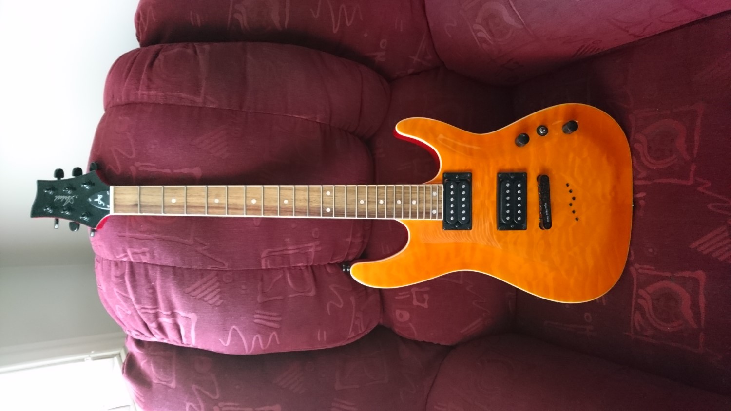 I have found a few uneven frets that have caused a couple of problems for me, so the guitar is back to un-strung for now. Trying to play the 14th fret on the high E gives me my 15th fret sounding, and I had a couple of spots that tap-out with bigger bends which I don't think should really happen with a 12" radius. I'll be looking in to sorting that over the next week or so. But the otherwise solid feel, colour, pickups and fat neck give me enough reason to put a bit of effort in to the guitar and get it up to scratch. Also I'm just a giant sucker for superstrats I think *shrug*