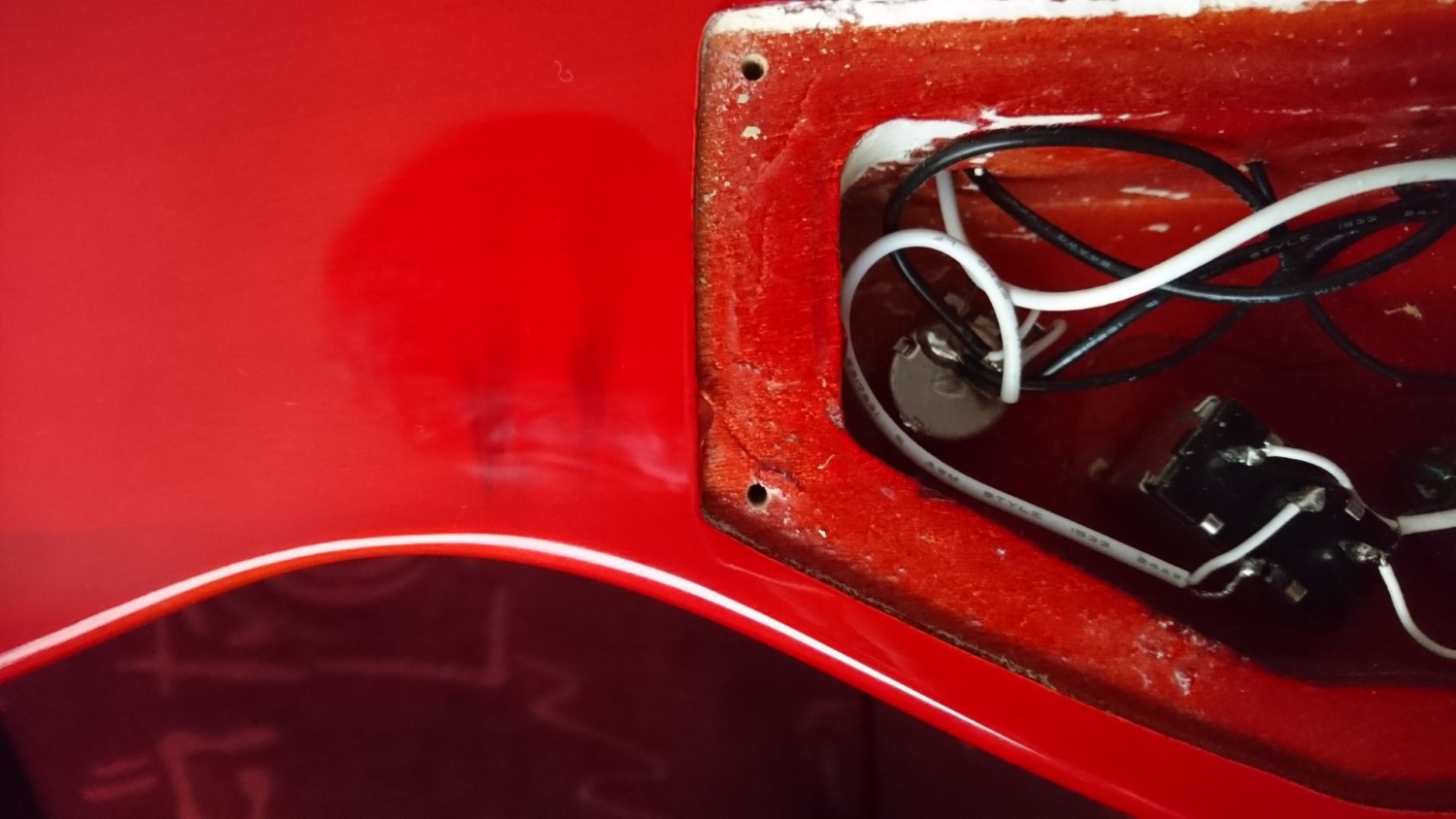 There was two runs of clear-coat, one on the end of the fretboard and one on the inside of the electrics cavity