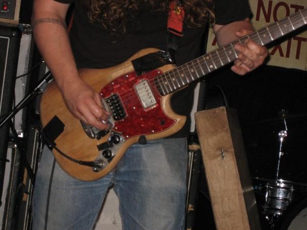 It turns out this is a seriously hacked up/modded 64 Fender Mustang. I never would have guessed that one.