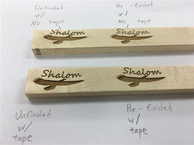 Leaning towards engraving (laser), but what the engraver does is turn the top .1 mm to ash (burn) which shows a darker colour. Don't know whether that would affect the staining.