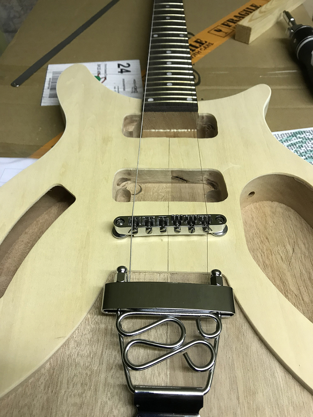I have put the bridge and saddle and a couple of tuners in place temporarily to check alignment