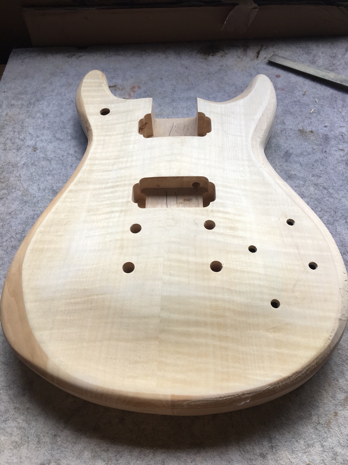 Most annoying, the top veneer doesn't seem to be centered, so the whole point of the veneer is lost! I've been considering carving the cutaway like a PRS and putting bevels in so maybe that decision has been made, but it seems a shame to have to remove all of the veneer.