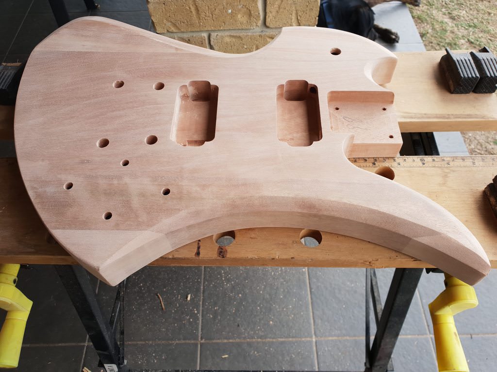 I have spent the day sanding and giving it a grain fill with ebony timbermate. I am wanting to enhance the grain in the mahogany hence the use of the darker ebony. It appears to have darkened it up nicely.