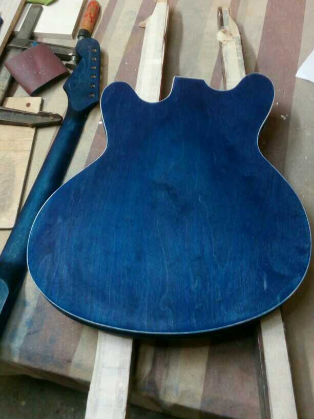 Some imperfections on the binding , and the 5 piece body which was not mention on the description. Its a hollowbody and it seems rather to be filled in with scrapwood rather than been routed out.