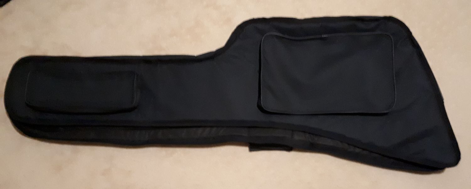 As there is nothing readily available to fit an Explorer Bass this is as good as it gets. Padding only feels about 5 mm to maybe 10 mm in places. It has an inner reinforced section above where pickups may be situated. Also has 2 pockets on the front plus backpack type straps to make it easy to carry on your back whilst carrying other things such as an amp with your hands.
