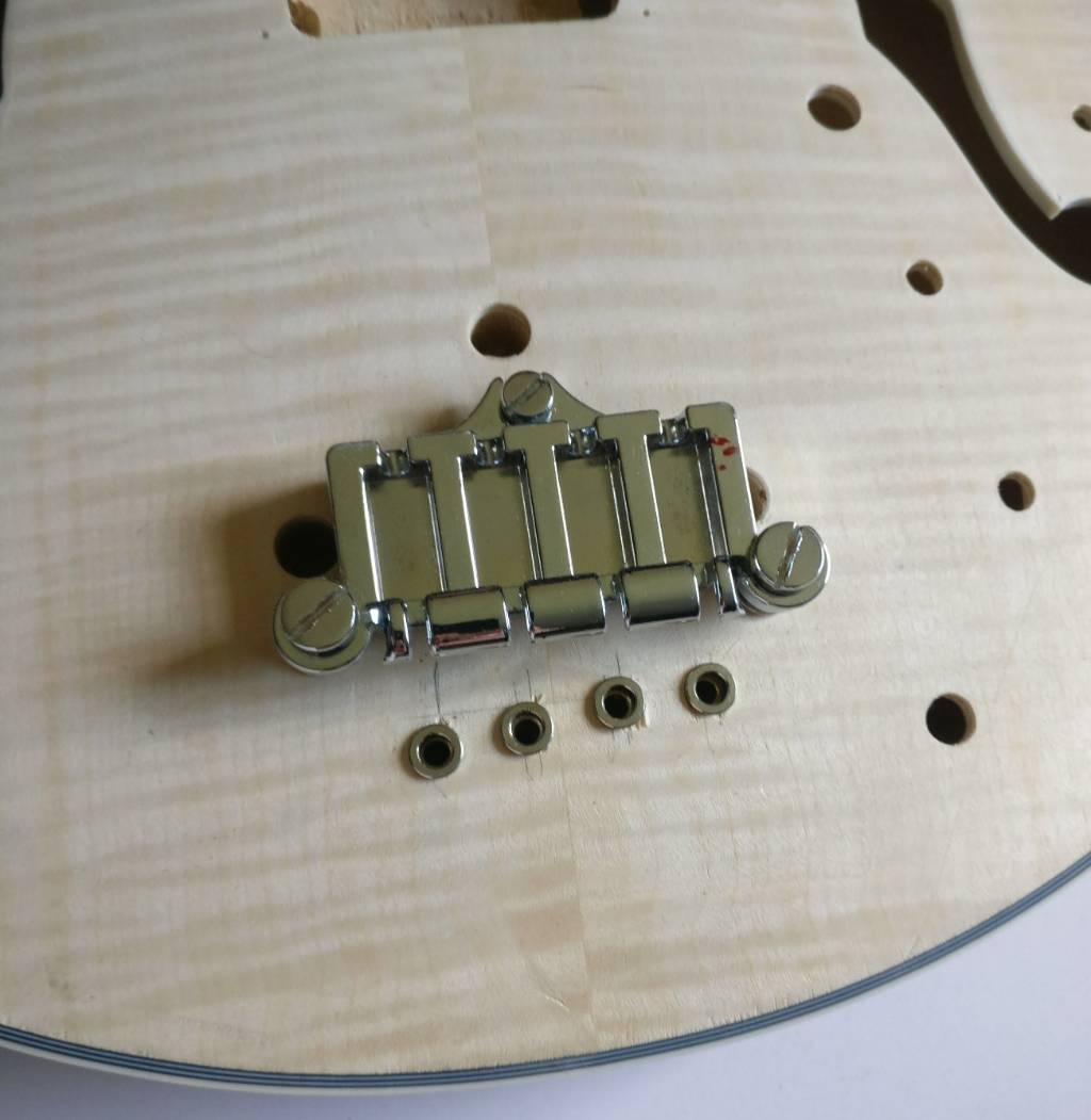 Still a work in progress but here is my solution. I am making it string through which you can do with these bridges. Strings are off in the pic, but the neck is attached and I did try stringing. It works, although you need to be careful to use long enough strings.Attachment 29931