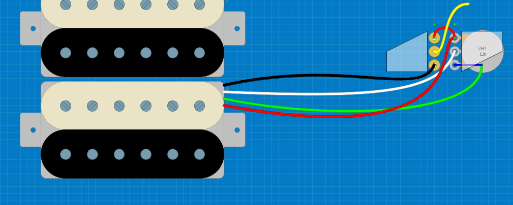I've built a bunch of guitars and a bunch of pedals but I've never actually plotted out my own circuit. Here's what I'm trying to accomplish with an MN taper dual gang pot and a humbucker: