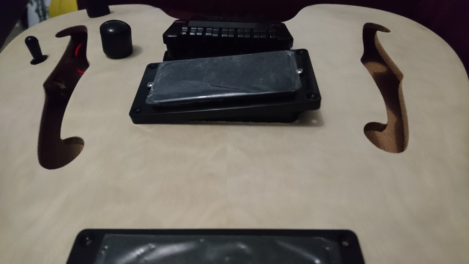 In doing a dry fit, it was mostly good. I'm a little unsure what screw are used to hold the bridge down at the moment, but I'll grapple with that part later. I did notice though that the Bridge Pickup Rout was not wide enough for the pickup, strangely. Will have to file that back, nothing that can't be fixed.