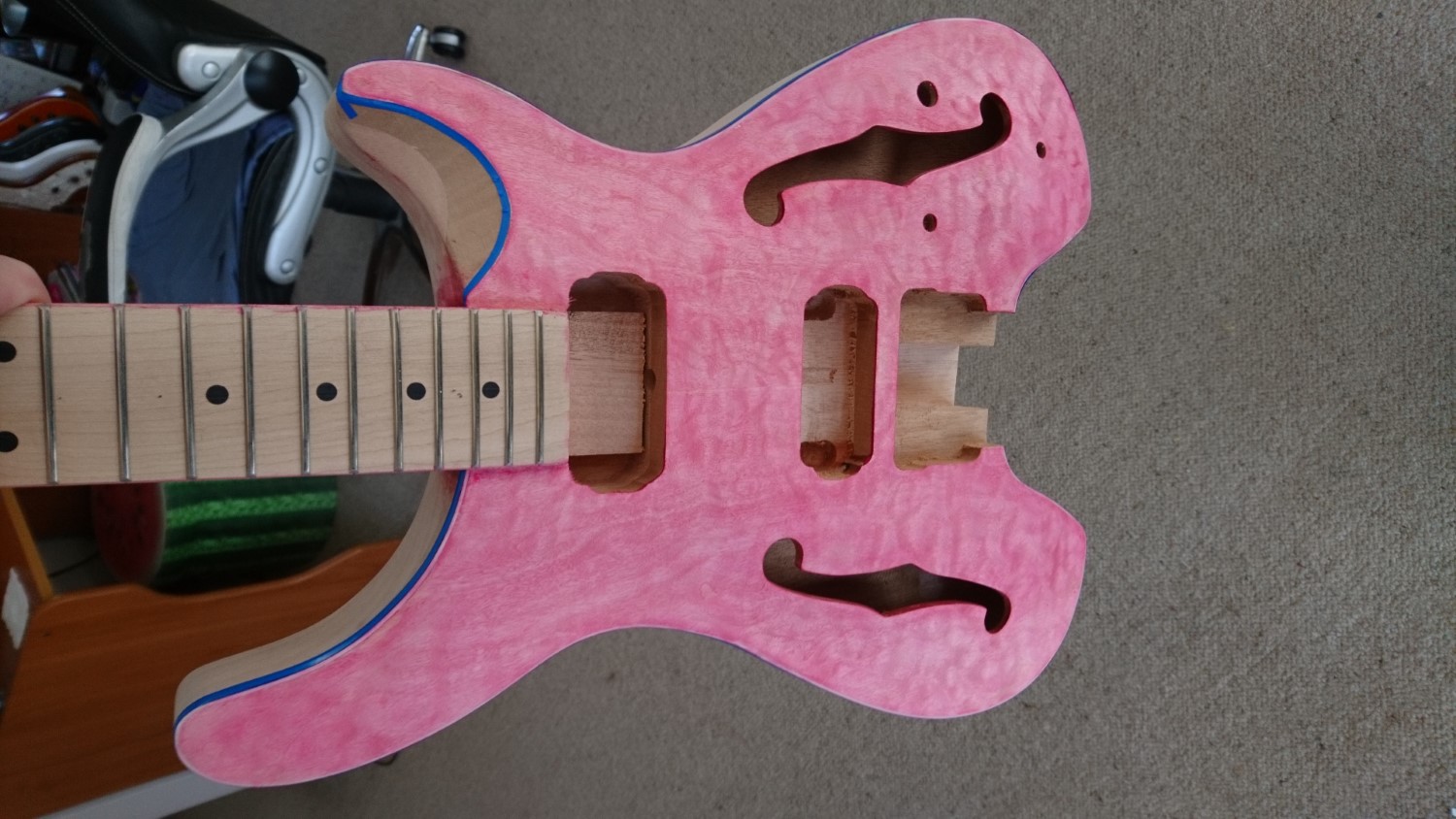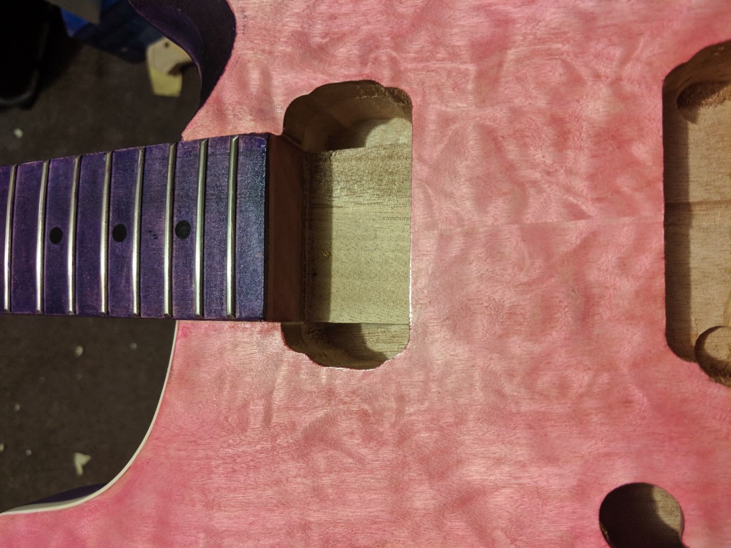Haven't had a chance just yet to grab some good pictures to show the figure, but the top figure looks pretty decent, and there's a bit running through both the fretboard and the back of the body!