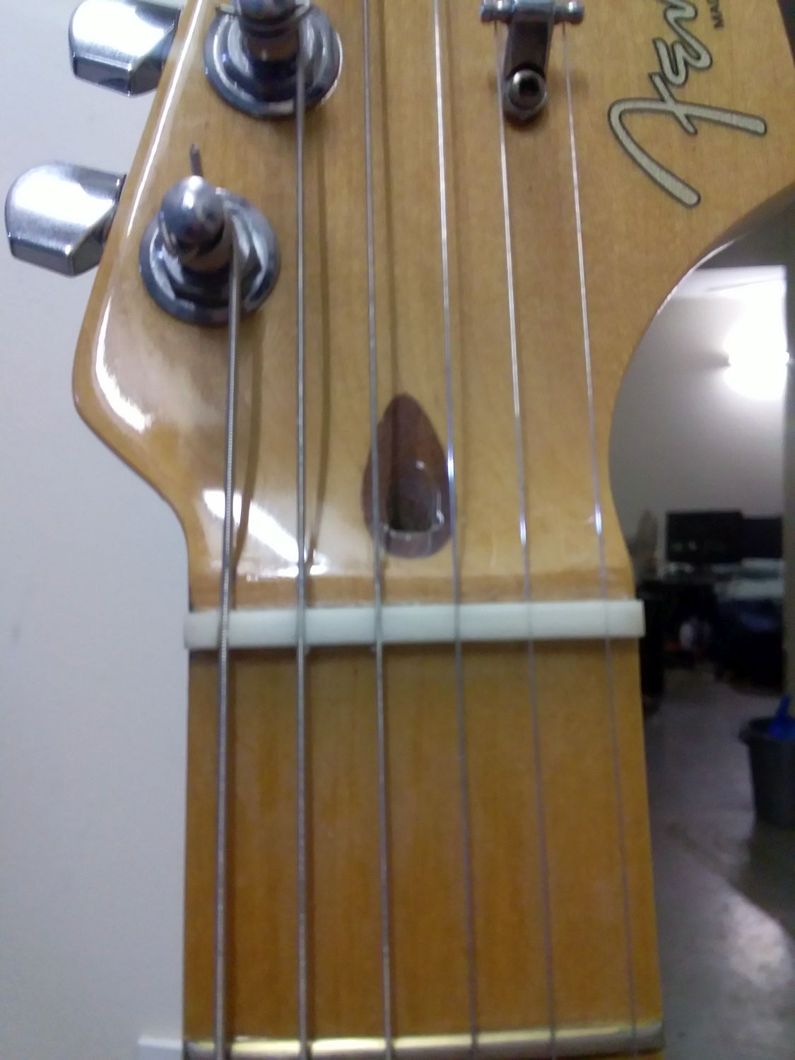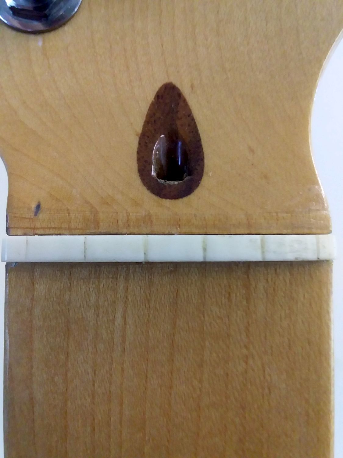 Here's a pic of the glued in pre-slotted bone nut: