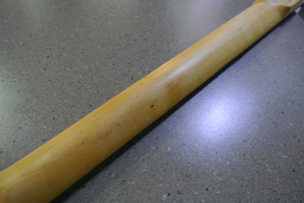 Looking good. So it then went to hang in a cupboard to cure. So, I checked it regularly since then and noticed it was getting patchy in places. I though this might have been due to different parts of the neck drying quicker or slower than others, but after 6 months or more, it hasn't really changed.