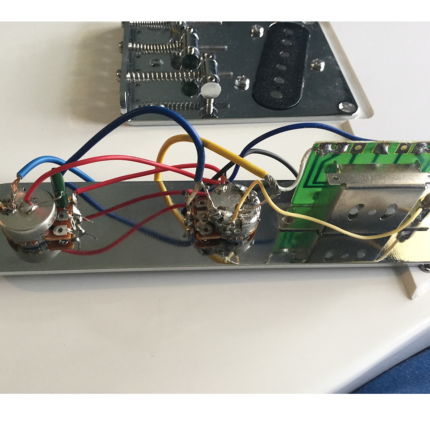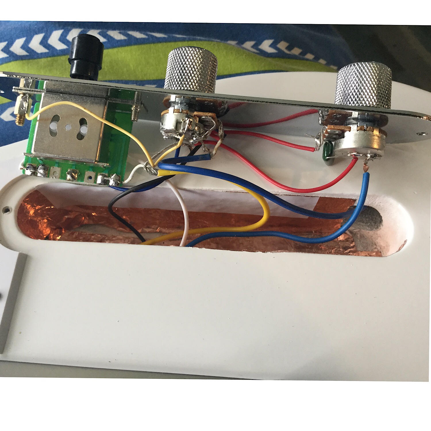 Once I soldered it all and assembled with strings, I plugged it in to test it. The moment I touched the strings, it buzzes. It sounds just like the standard electrical hum but it is much louder. It buzzes when I touch the strings, bridge and control panel (except when I touch the knobs).