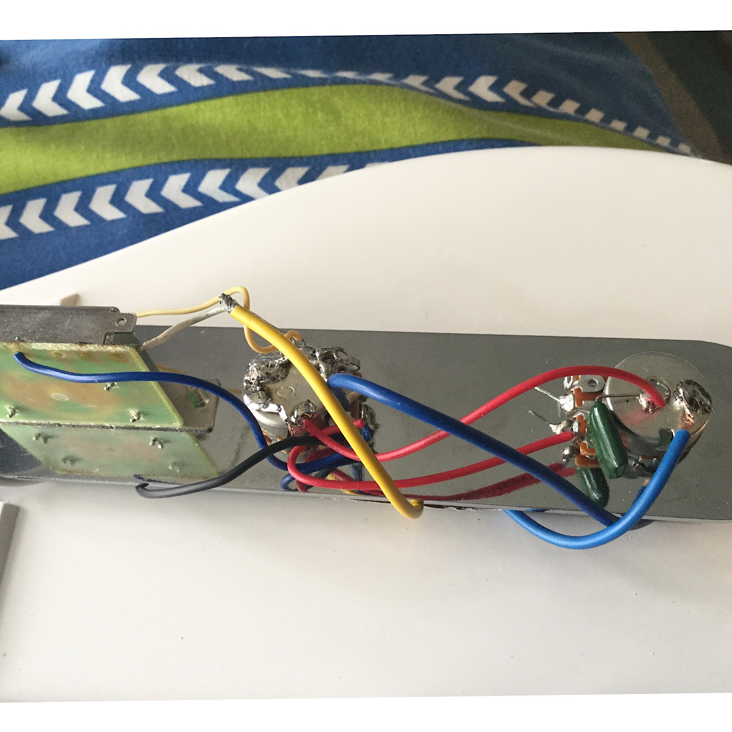Here’s some pictures of the wiring (there are extra wires as we grounded the bridge and the switch/control panel, which is the little brass bit, to the pots)