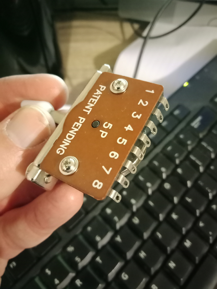 I picked up this 5 way switch from a local amp repair guy, but now I've looked at so many switch diagrams I've massively confused myself. Can anyone help with which way this should be wired into the diagram I'm working off?