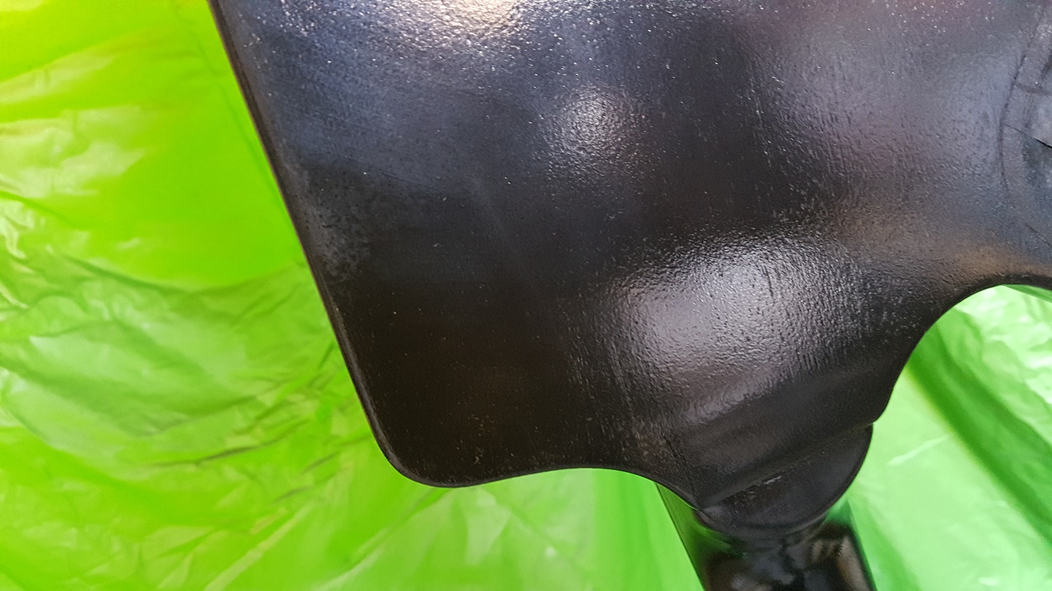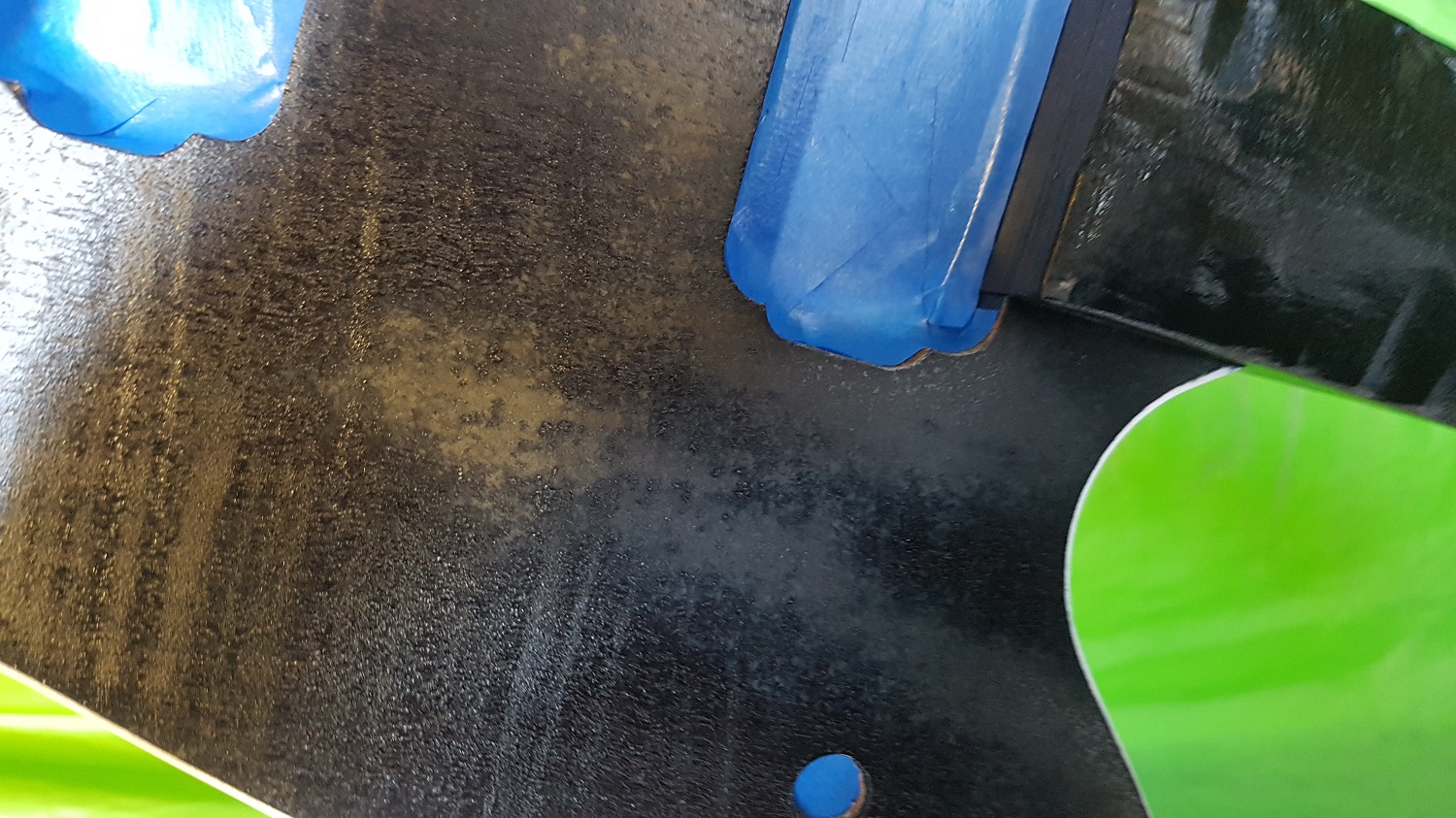 A couple of hours later, I had a look. The clear coat is white in some places and cloudy in others.