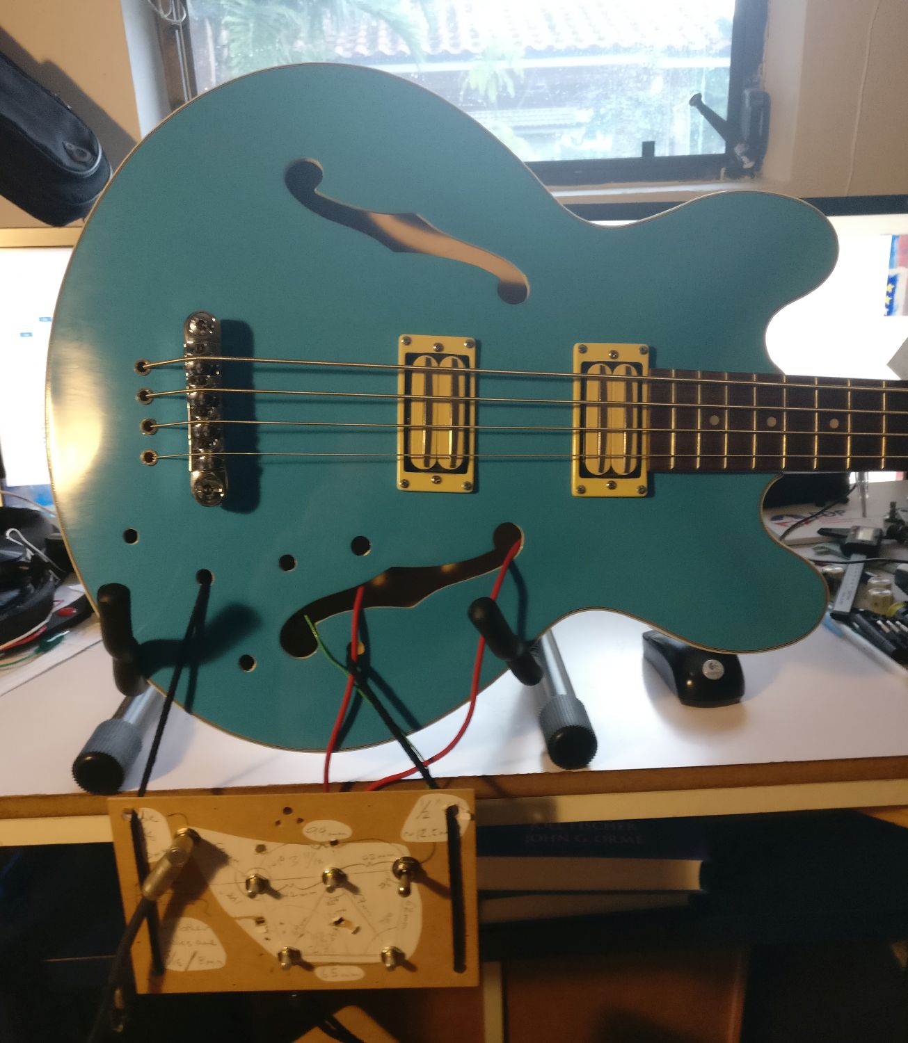 If you have every wired an ES style guitar with a center block, you know that you want to do it just once. From hard experience, however, I know that I don't always get everything right on the first go-round. So how can you test the wiring harness before it is installed? After thinking through and rejecting a number of other options here's what I came up with: