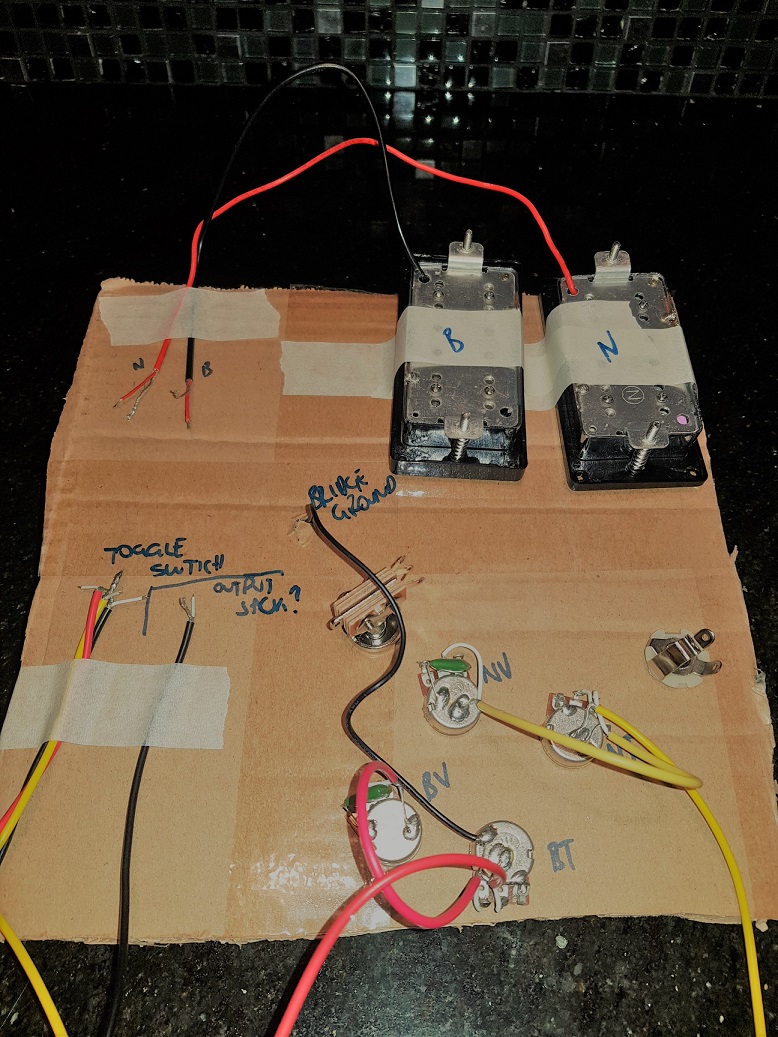 About to start the daunting task of getting the wiring sorted for a ES style hollow body. The below picture is of the wiring as it arrived, and the onto a template that seems like it should be the correct order from my extremely limited (aka non-existent) wiring knowledge.