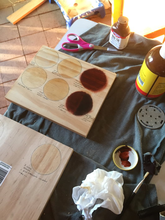 Also started doing some little stain + finish tests on some scrap timber I had lying around. Unfortunately the only scrap I have is pine, so not ideal, but at least it gives me an idea.