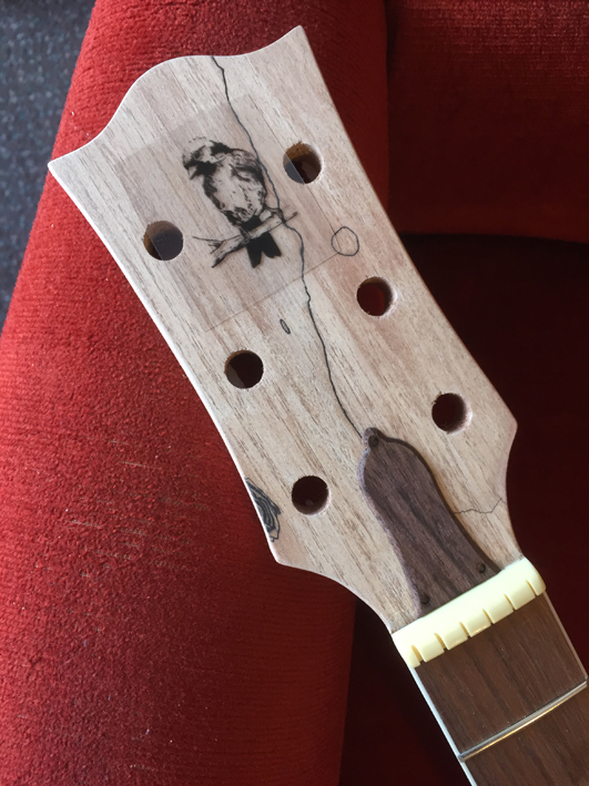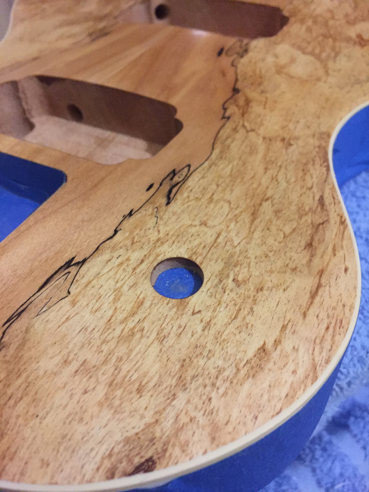 Also spent ages trying to get a red stain I was happy with, and in the end decided to go straight black for the body and neck. The hope is it will make the spalted front really pop. Also I couldn't decide on hardware options that would suit the kind of red I was imagining, but now I'm rolling with the idea of black hardware on the front against the spalted top, and gold hardware on the back against the black. Will post some pics of the stain-in-progress in the next few days.
