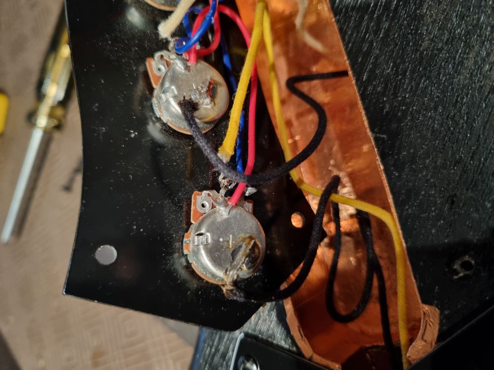 If in doubt, post some pictures of the wiring. You may need a few, as we’ll need to see all the pot connection and where they run to, and it’s hard to do that with just one photo as the wires normally cover up a lot of the soldering details and it’s important to be sure if any solder joints look bad.