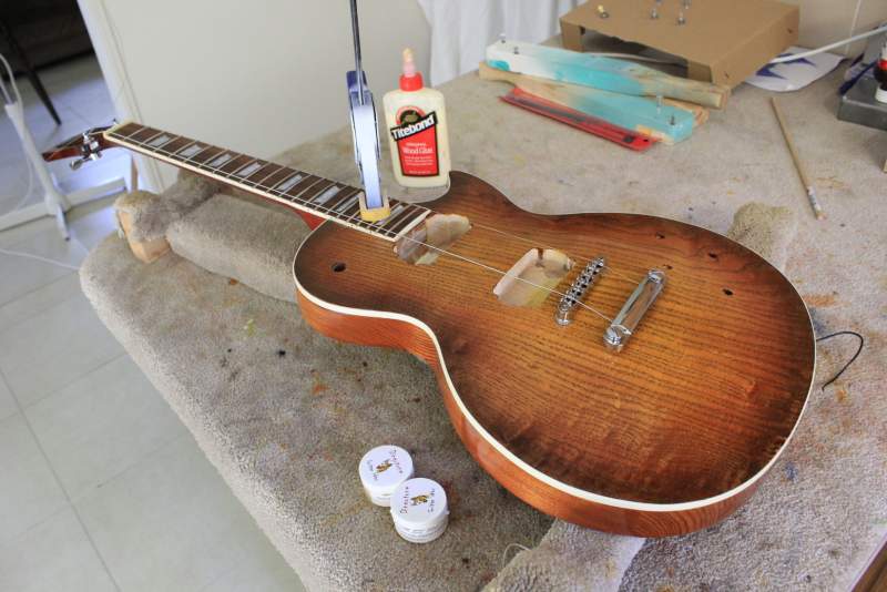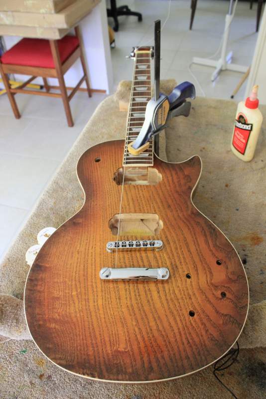Well done Gav she's a stunner. Sure you used enough glue, I'm the other end of the scale use way too much and got to wipe it off the finish. Interested to see the wiring diagram of the 50's vintage wiring, wonder whats different to the standard LP wiring.