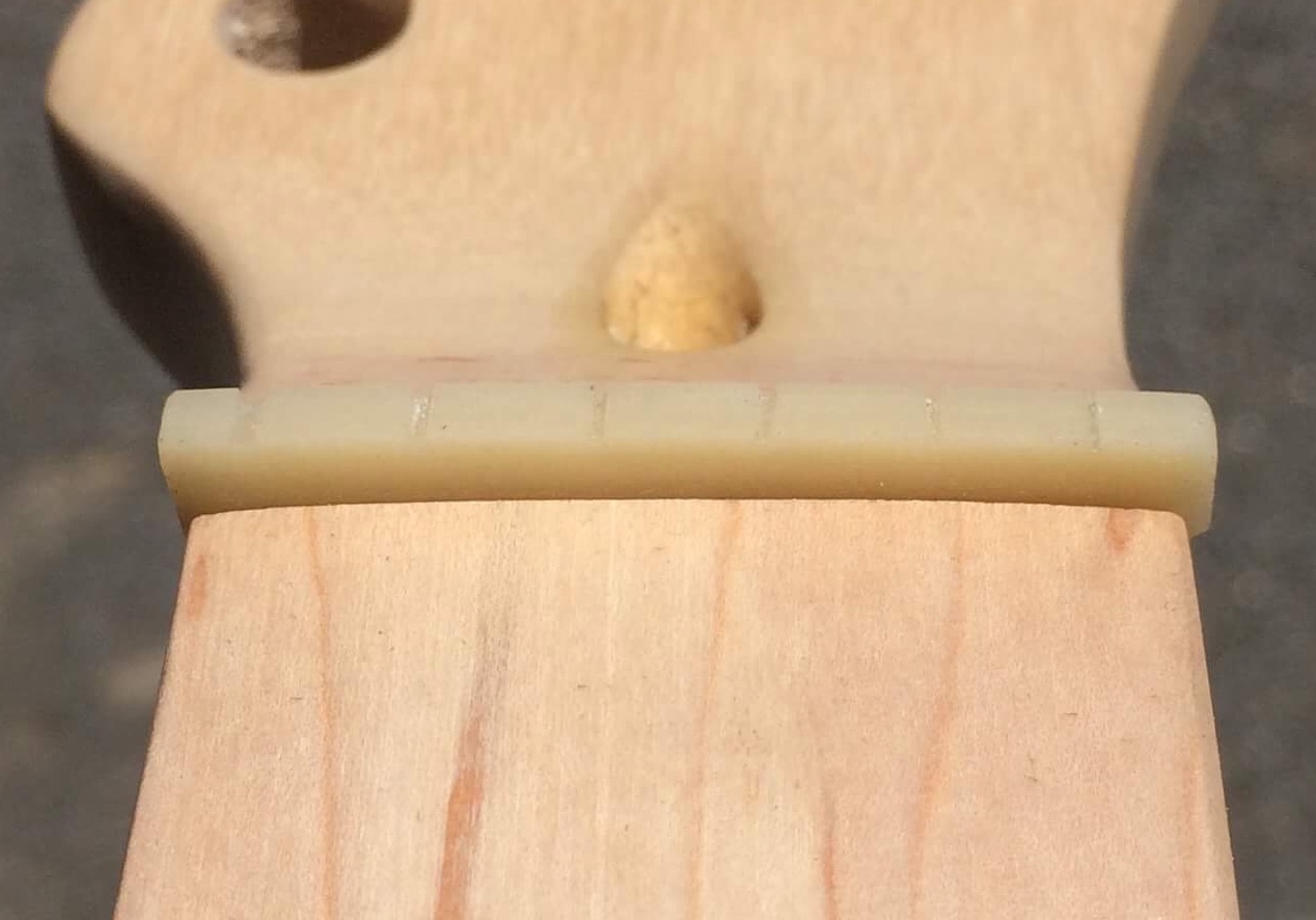 Okay so I’ve filed down the bone nut to fit the slot. It’s obviously a bit long as well - do I just try and take an even amount off each side until the edges are flush? And should the edges be square, or taper to make nice curved ends on the top? Attachment 24598