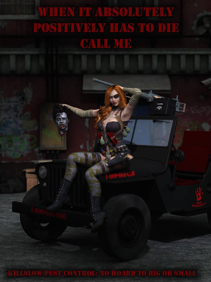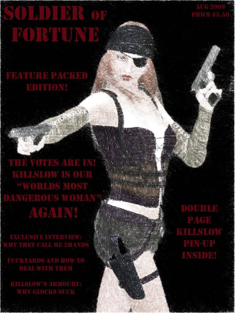 Dorothy Killslow schizophrenic assassin for hire. Lost an eye in a mission in Somalia.