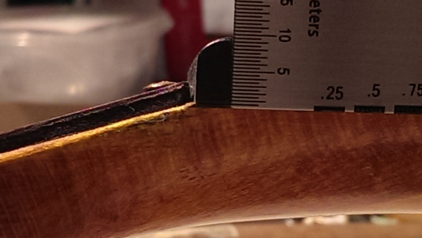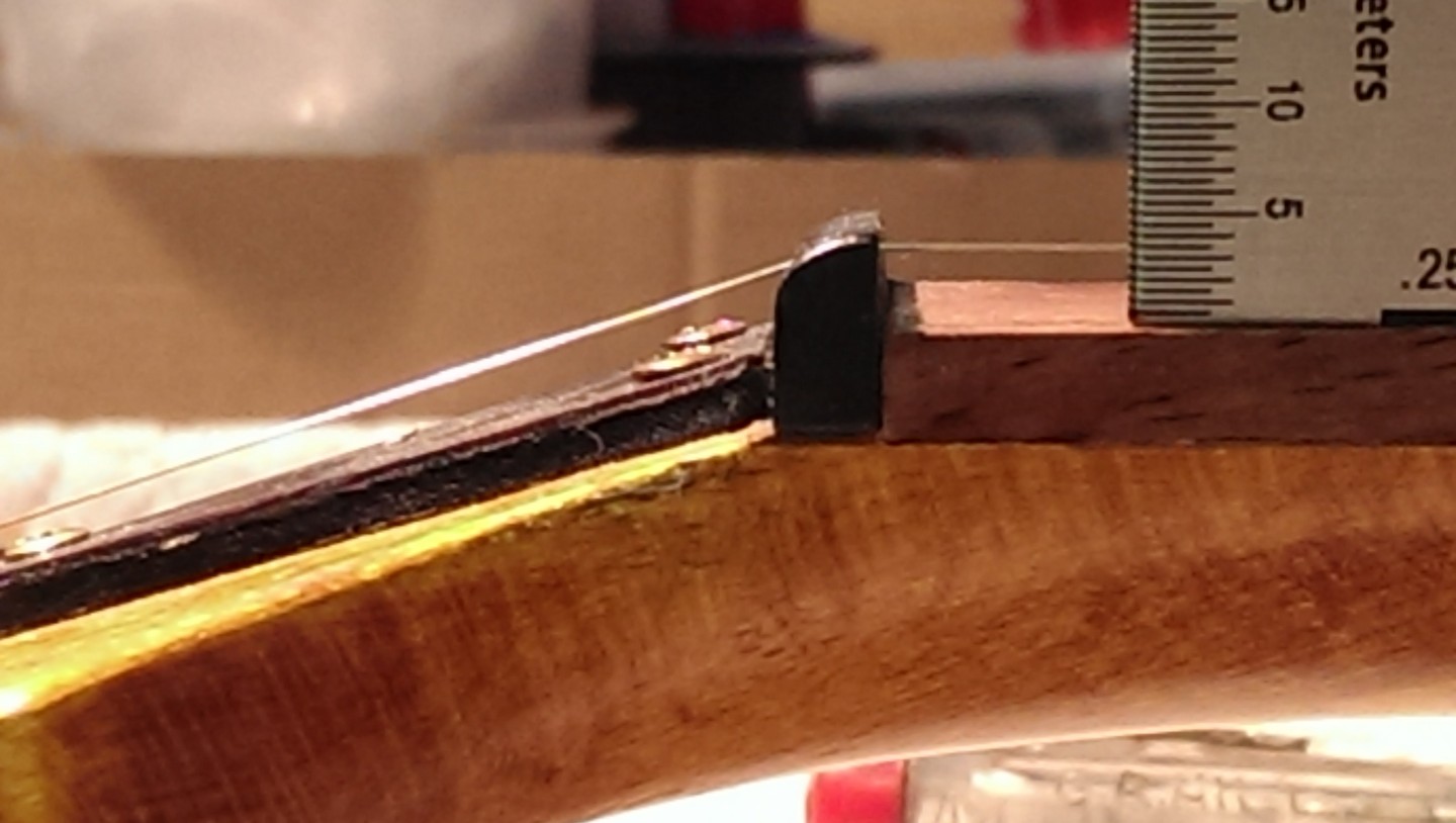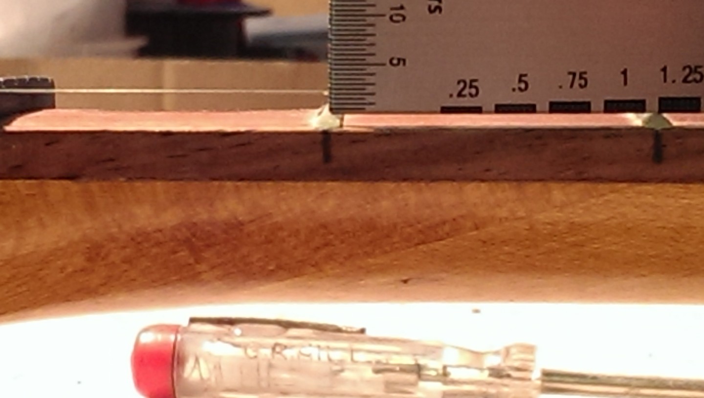 Did some more pics of the neck strung with the high e string, the string depth, height from string to fretboard, and string to fret.