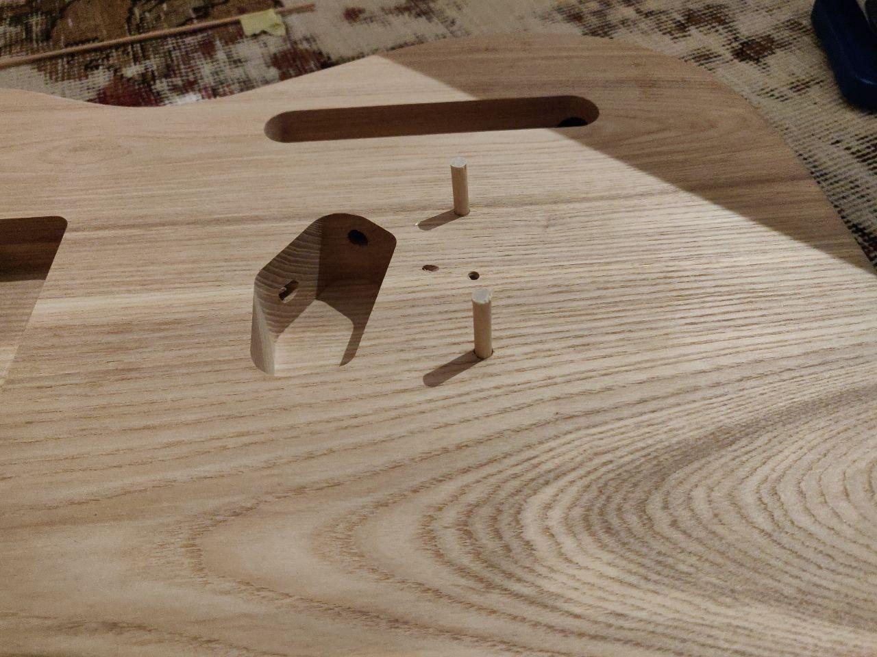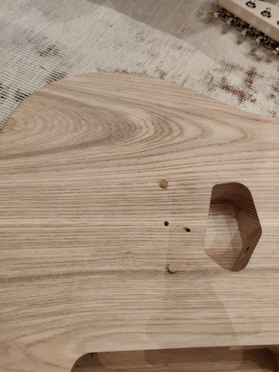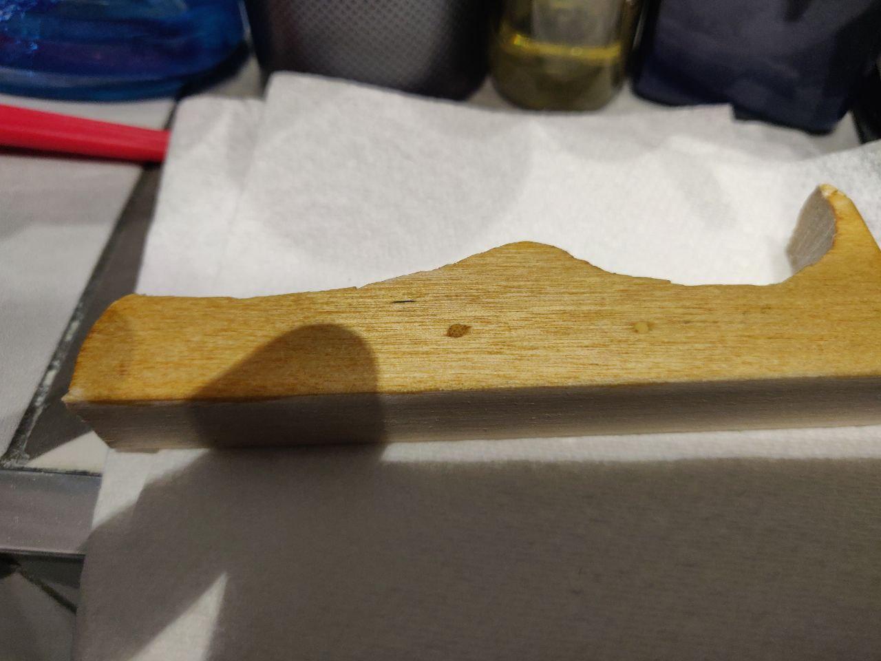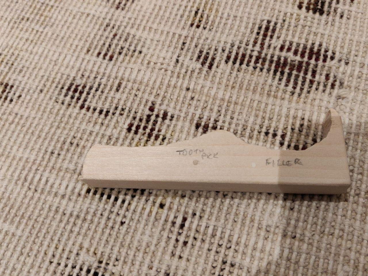 Toothpick looks a little dark, filler a little light (which is a pity, because it was a good match then wet). Will see how it looks with some finish on it; there's still the option of trying a darker filler if required.