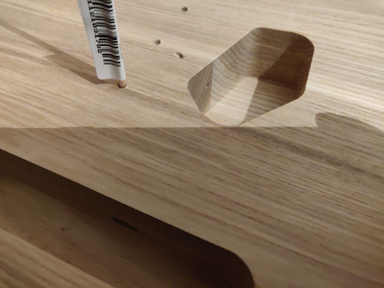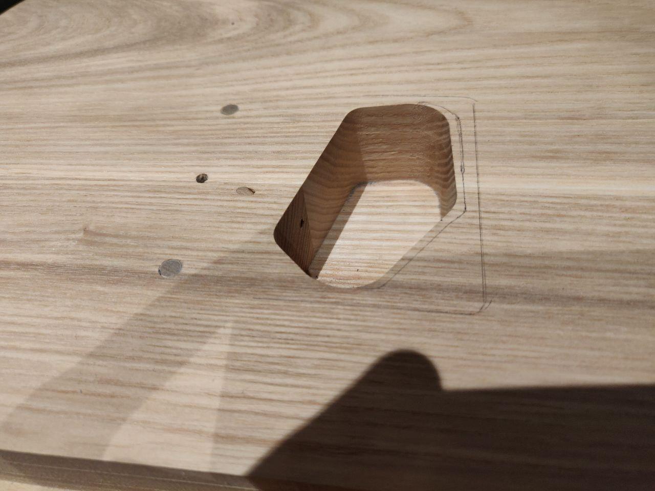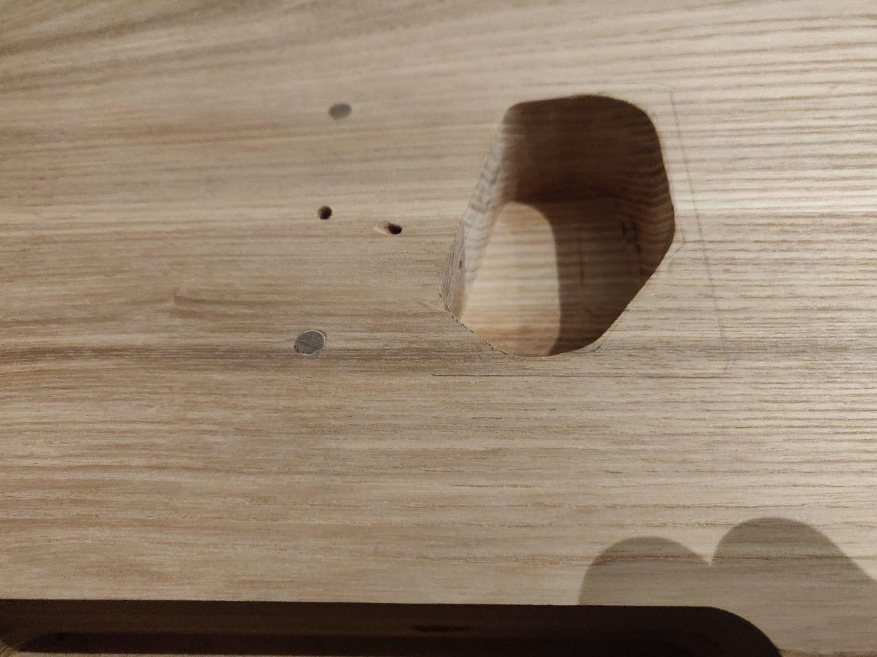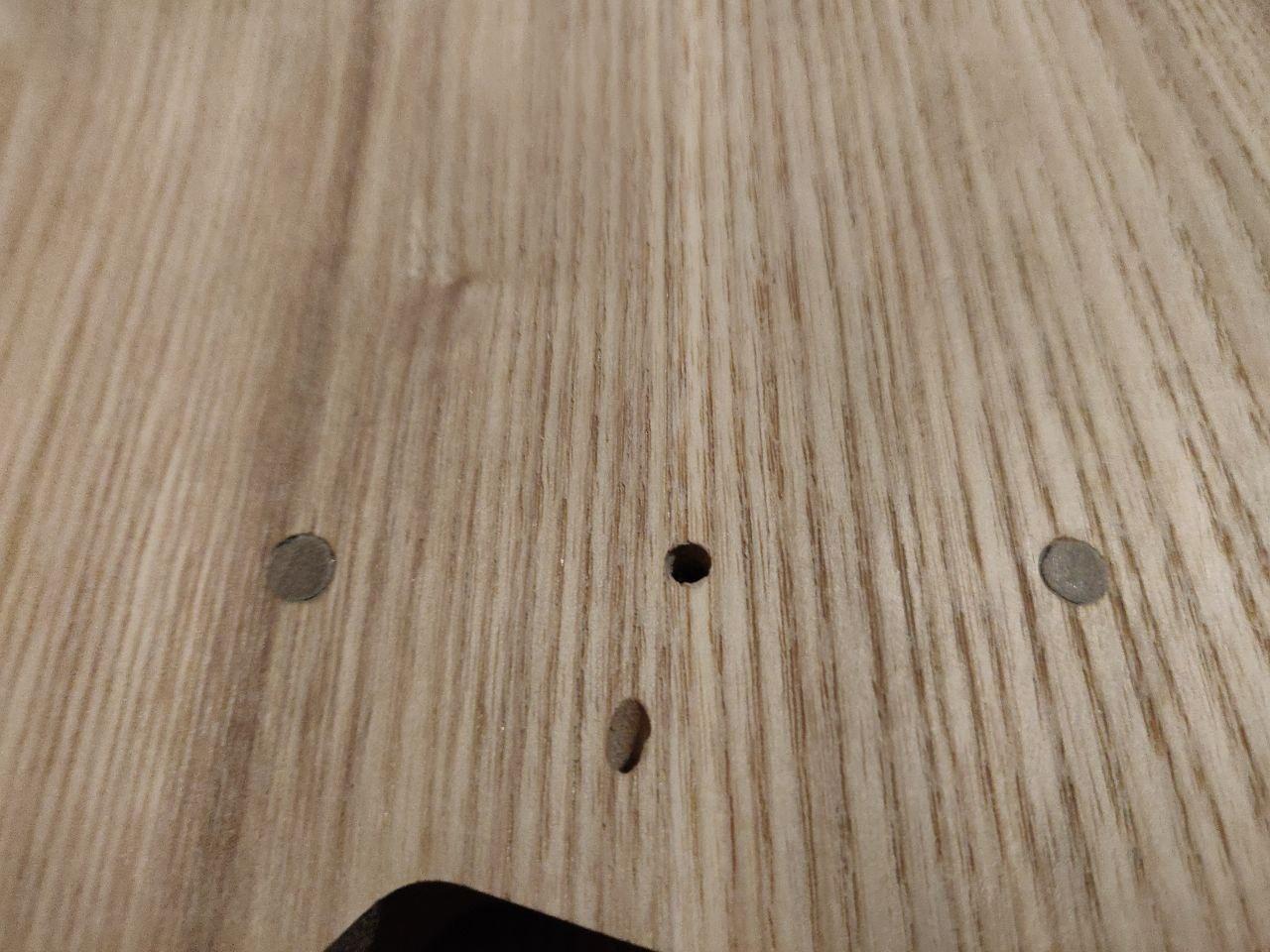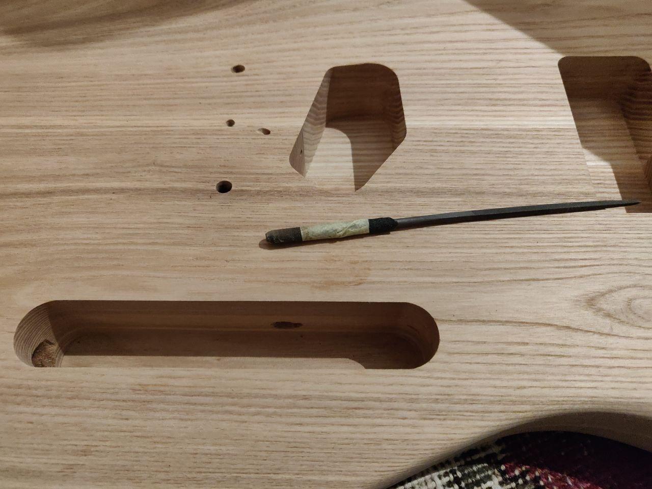 Toothpick looks a little dark, filler a little light (which is a pity, because it was a good match then wet). Will see how it looks with some finish on it; there's still the option of trying a darker filler if required.
