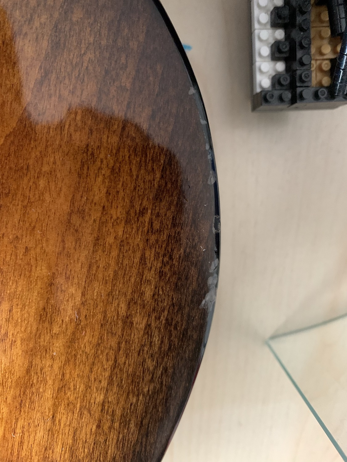 There's another mark in the top but it's under the pick guard - but the pictured damage is just under where your forearm goes.