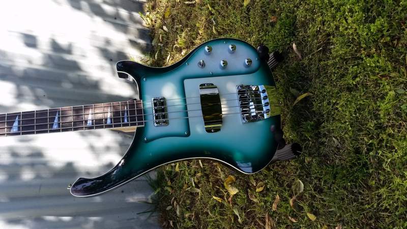 To complete the diary, the pickups used are an Entwistle JBXN neck pup used in the bridge position - for pole spacing, although its still a little wide - and wired with reverse polarity and 250k pots and .047 cap and a Fender Fideli'tron with 500k pots and .022 cap. The tone for the humbucker may need a different cap as it doesn't make a lot of difference, might sound better thru a bass amp. There is a 'modified' wiring diagram for it using 250k pots and a .068 cap, maybe this would work better.