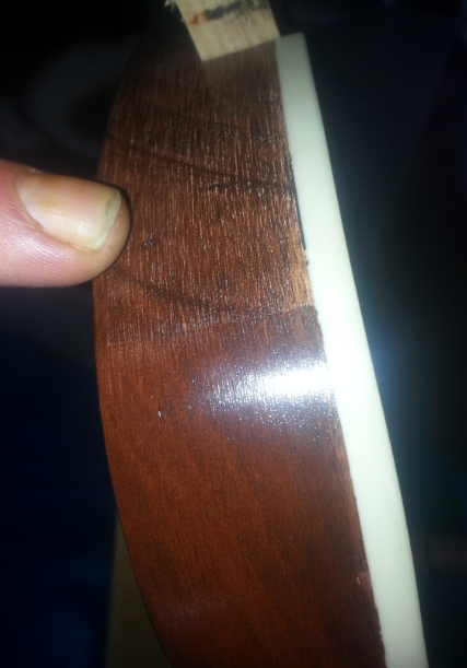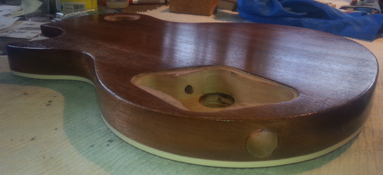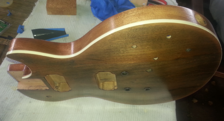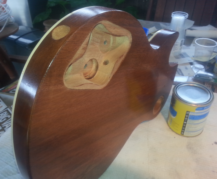 I wet and dry sanded a small section of the side of the body from the neck to near the pickup selecter cavity area.