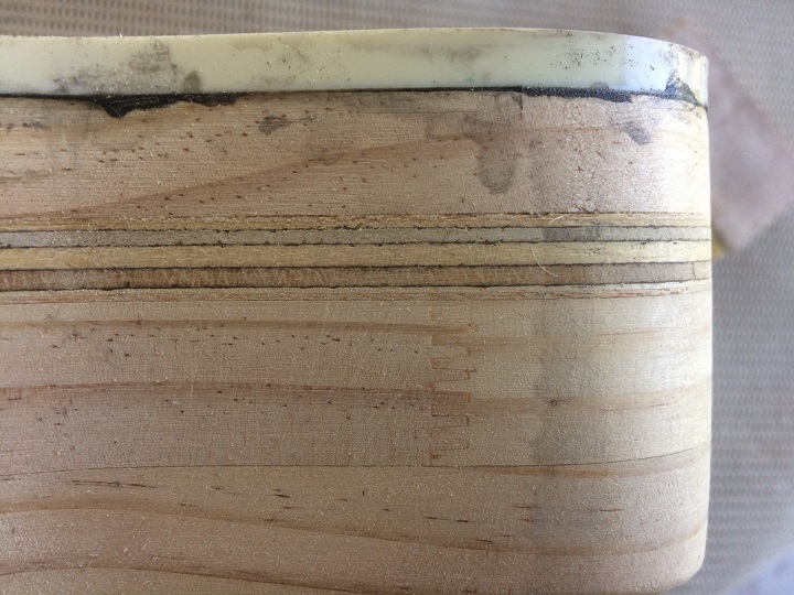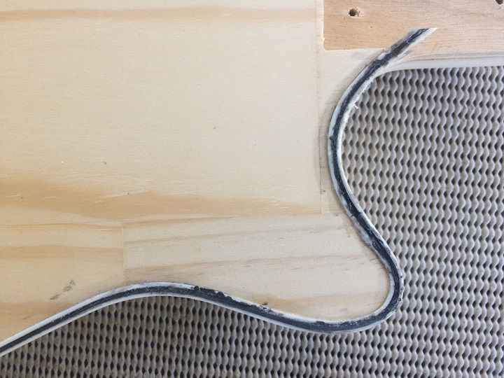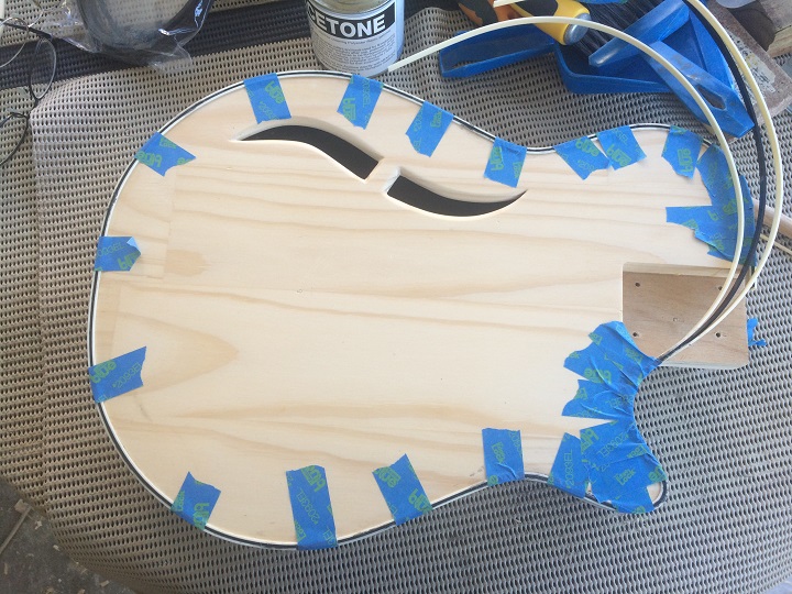 The white plastic did not react to acetone so I had to use super glue to glue the first layer of white binding to the guitar. I found that a thicker super glue works best for this application as it doesn't soak into the wood as much as the runny stuff. So I used a “gel” super glue to give me a longer working time to get the binding in place. Luckily the black binding did react to acetone so once the first white strip of binding was glued to the guitar I was able to use acetone on the black and bind all three layers together.