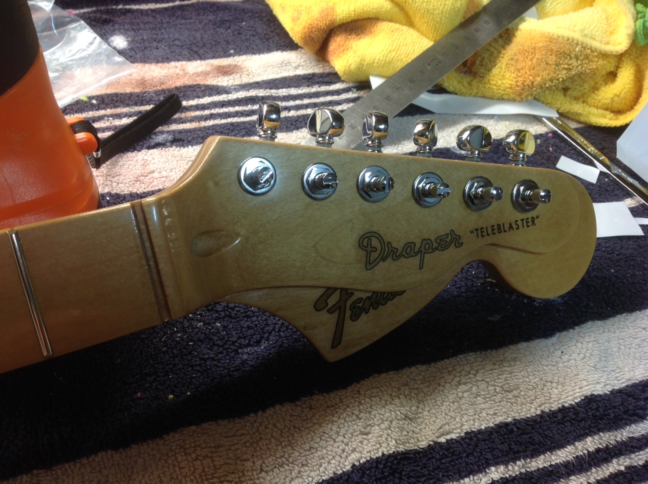 Here's the headstock together. Nice set of Grovers...