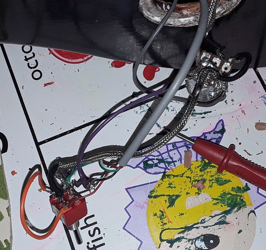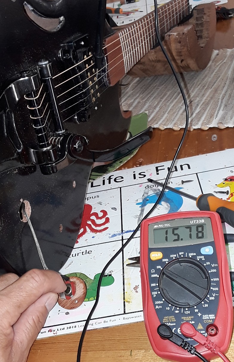 So I'm having dramas with the wiring. I had it all working outside of the guitar then when i tried to fit it the thread on the pot and jack plug weren't long enough. Sorted that out and redid the wiring and now ive got no sound, the current tester is reading 15 plus from all active points to an earth point so I'm a bit stumped as to whats wrong Attachment 29659 the pic has te active on the jack tip and earth to one of the pickup slugs Attachment 29660