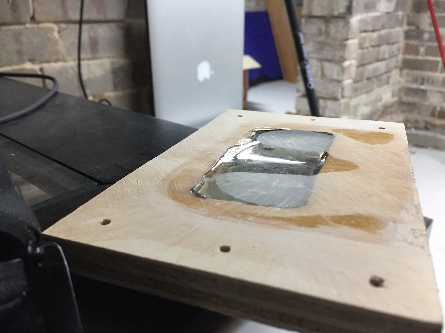 So, what to do? I can get around the surface shrinkage, buy simply building a dam around the edge of the pour hole and pouring a bit deeper. This would mean a lot more work to scrape and sand back, and it wouldn't necessarily fix the shrinkage at the edges issue.