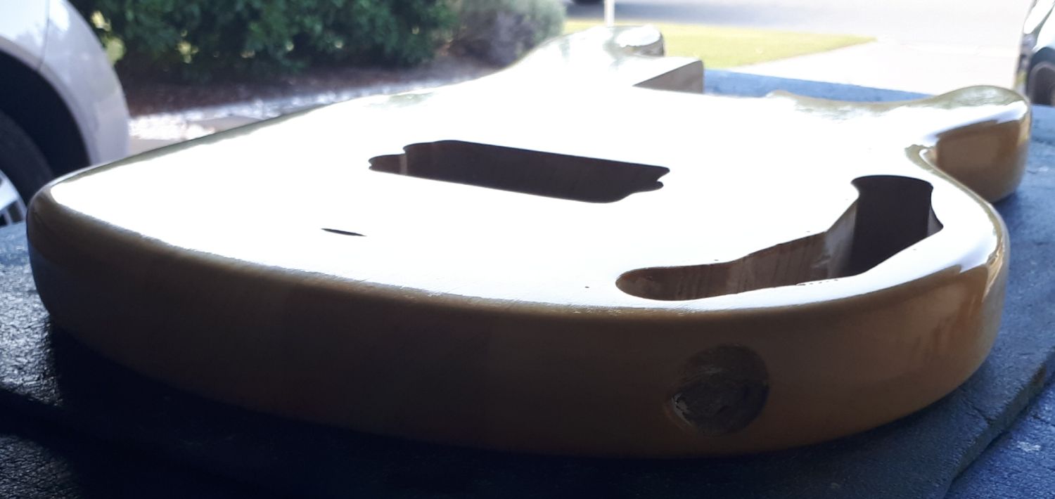 Did 1500 W & D on neck last night and 1200 W & D on body. Another 50:50 ragged coat on both tonight and starting to look almost done. Maybe one more week of 2 coats ragged x 1 wet sand repeating as I work my way up to 2000 grit. Thankfully weather hasn't been too hot or humid and each layer has gone on just fine.