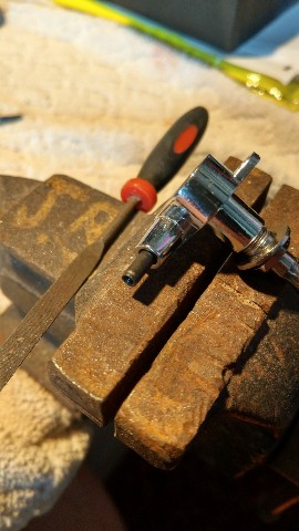 So after dismanling all of them i found a set with similar hole and screw sizes. About .02 too small. So i filed down the tuner spline and gently tapped them on. Perfect, the screws fitted perfectly as well. So now i have my own customised tuners with oversized tuning pegs. YES!