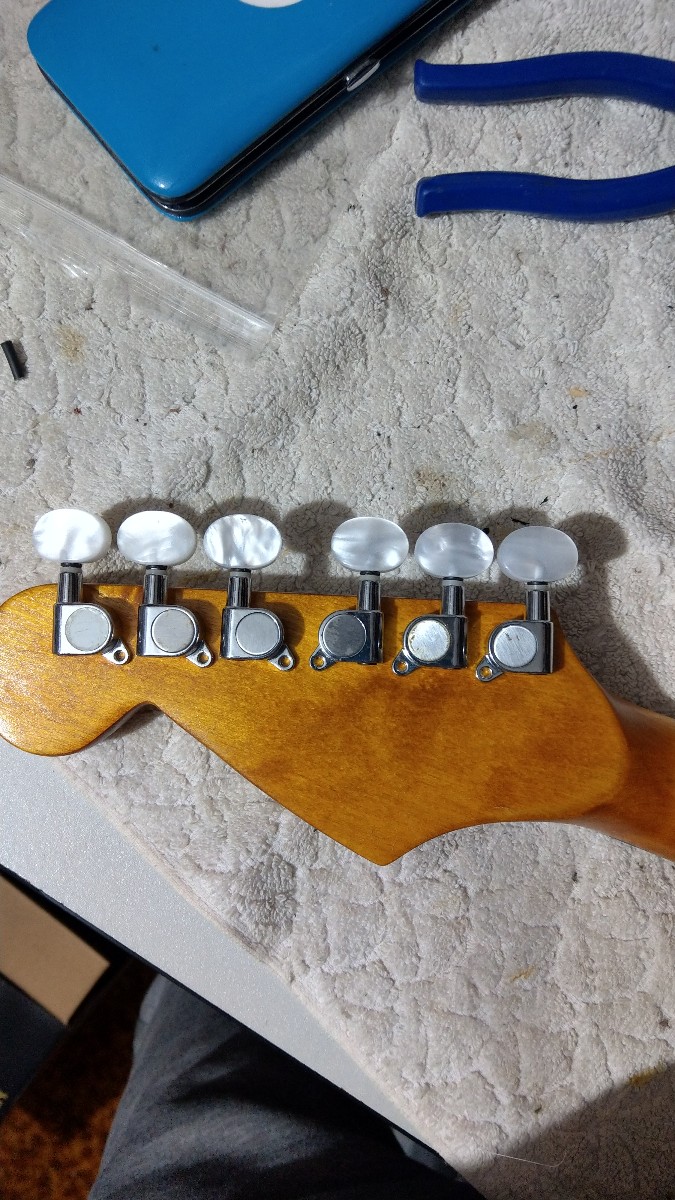So ive got about 5 sets of tuners in different colours and finishes and a set of tuning knobs in real white pearl.